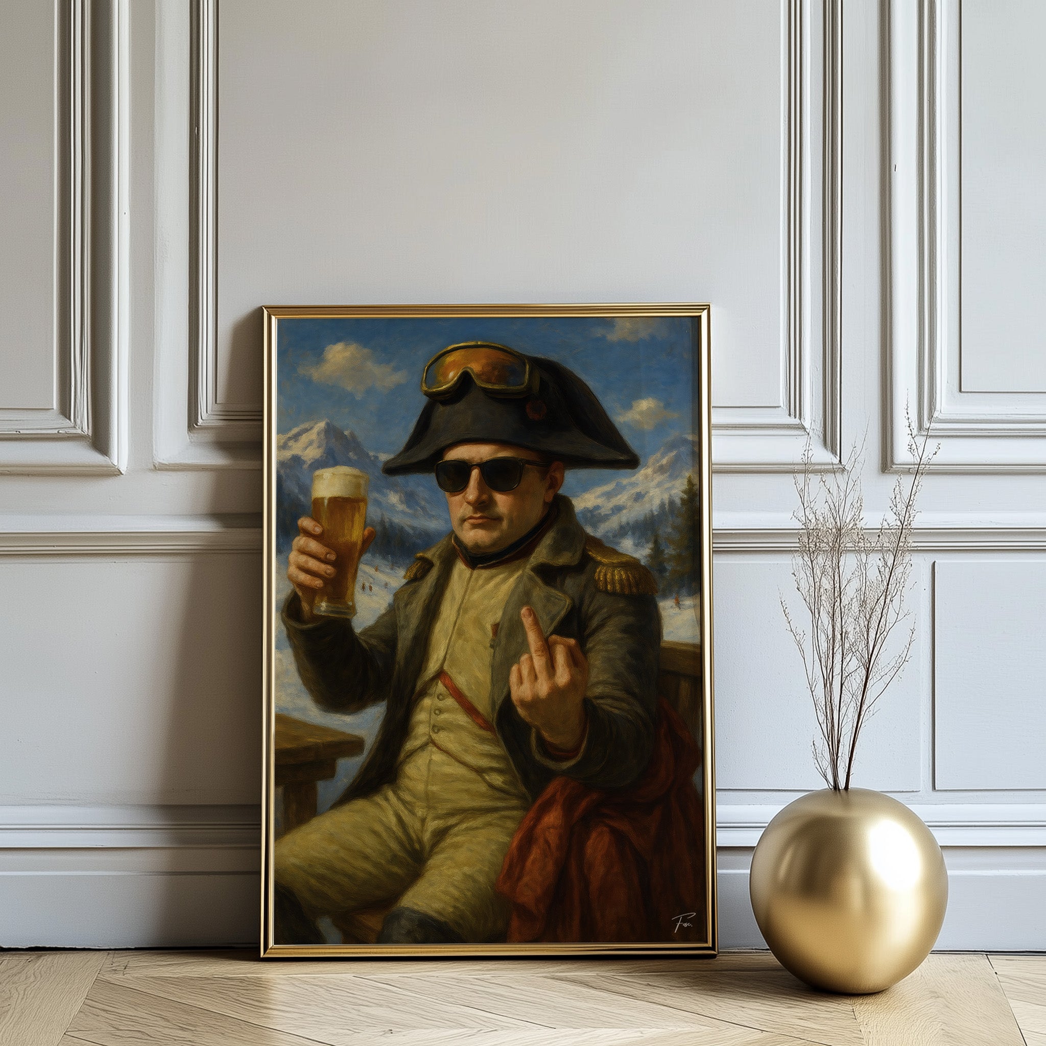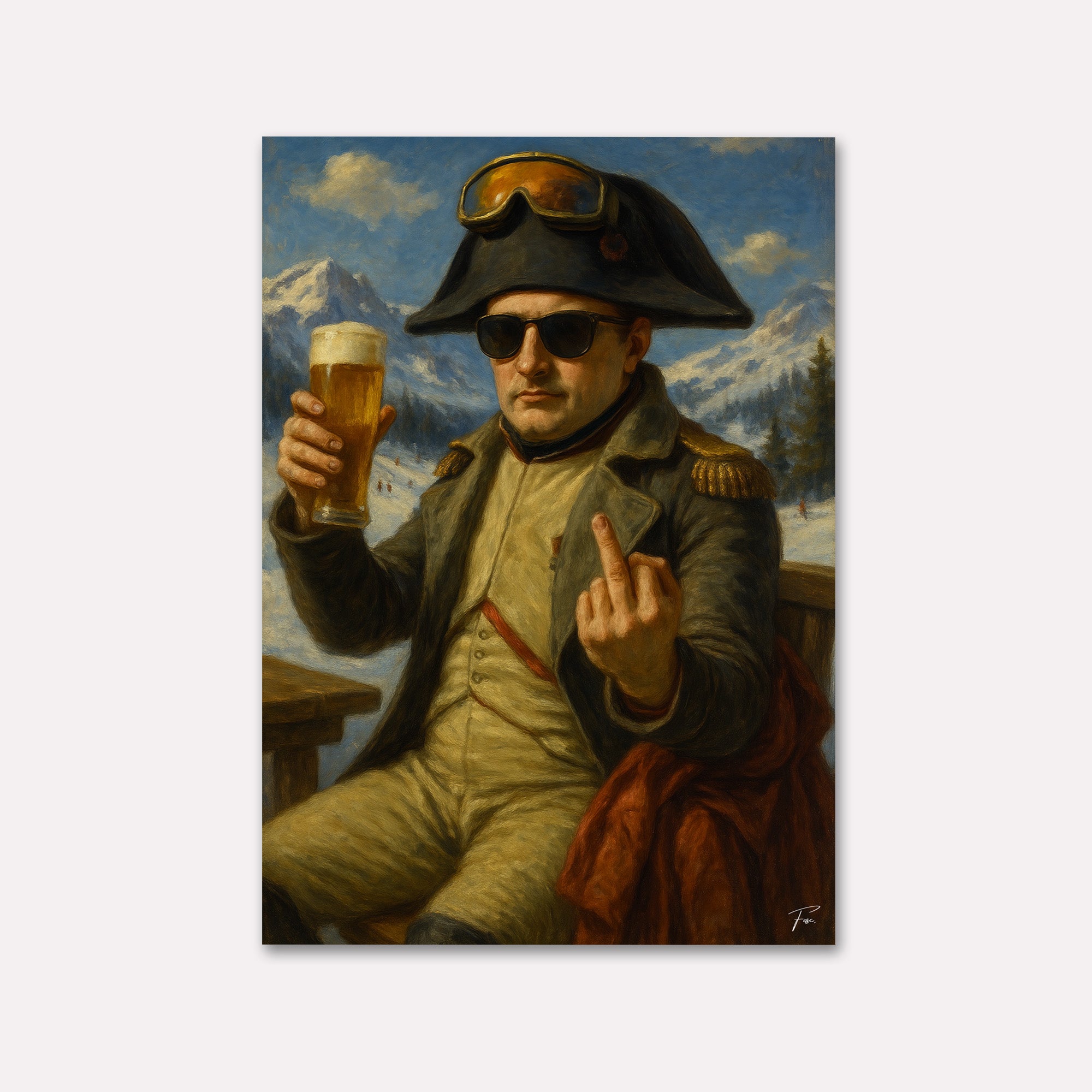 War is over, it’s time to après. Mountains, beer, and zero diplomatic tactics. A poster with personality.